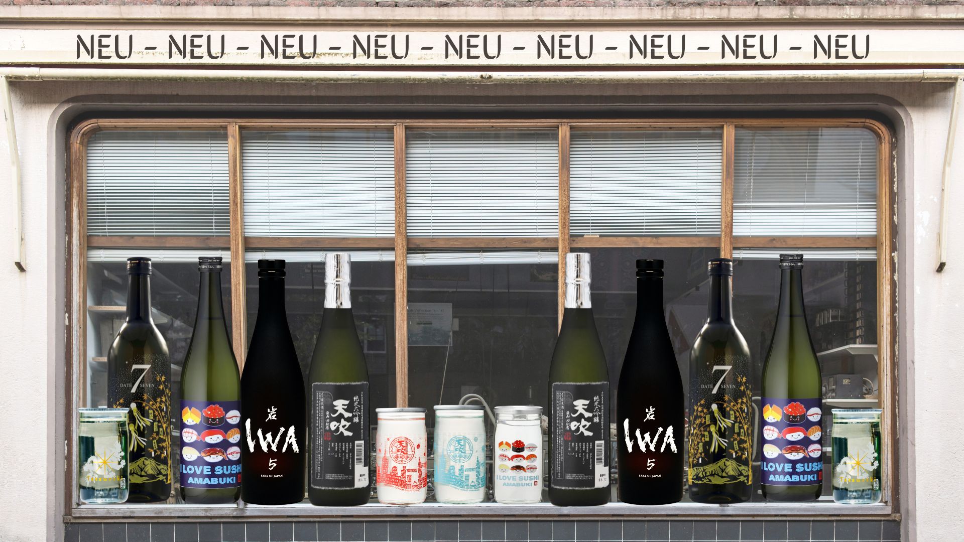 AMABUKI I love Sushi: This light and dry Junmai is the ideal accompaniment to sushi and sashimi. The cute illustrations of various sushi appetizers on the lable makes you want more. This sake is also available in a practical cup version.