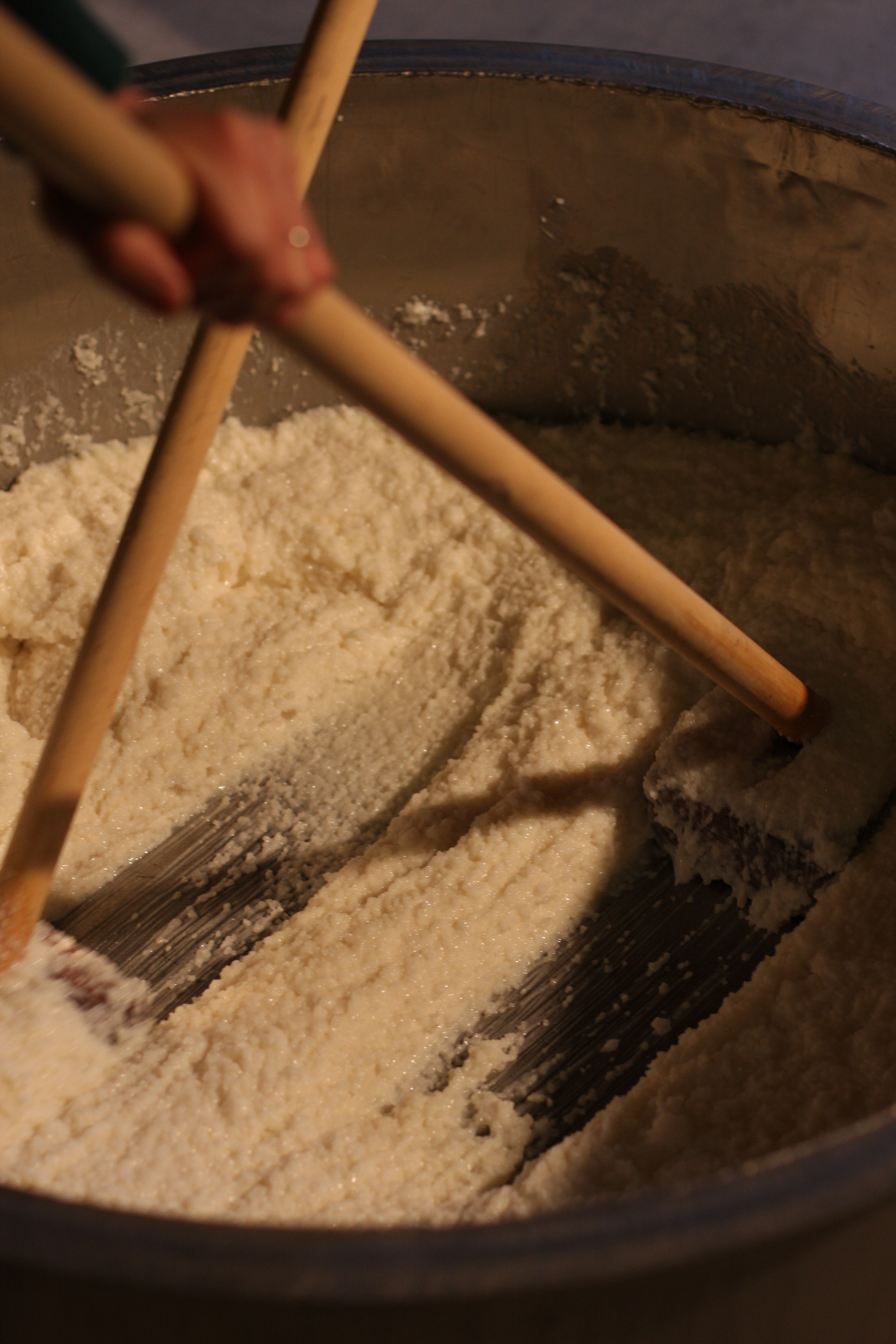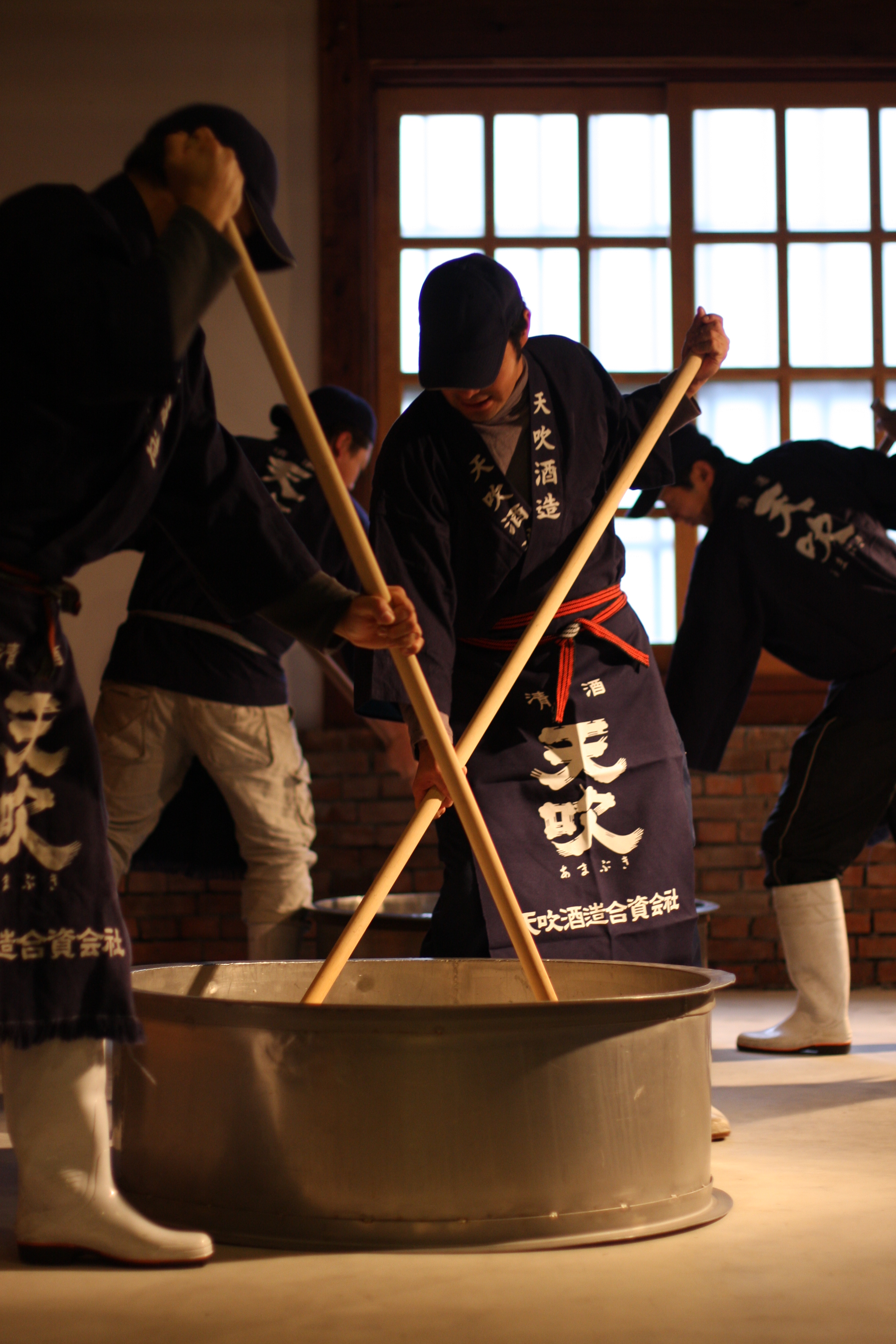 The kimoto method is an older and more artisanal way of preparing the mash. Natural lactic acid is produced by grinding the koji rice several times before adding water to the rice in a wooden vat. This physical processing requires much time and effort, as does the "yama-oroshi" step. Yama-oroshi is the process of grinding steamed rice and koji rice with a stirring tool called "kai" before pouring the mixture into a tank to develop into a yeast starter. This step requires great attention, as the rice must be stirred every two to three hours for an entire day. This effort helps ensure even development of the mixture and promotes natural lactic acid production. The Kimoto method results in a complex and rich flavor profile in the finished sake.